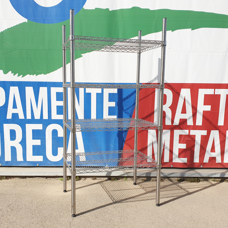 Stainless steel storage shelving unit with 4 wire shelves, 90 × 62 × 180 cm
